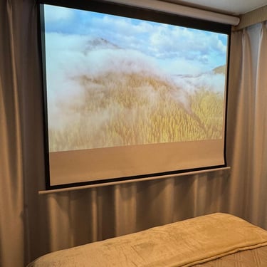 Tela retrátil e projetor de imagem com fire Amazon;