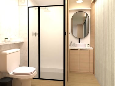Porta toalha e kit acessórios para o banheiro; Chuveiro elétrico; Lixeira de banheiro; Bux de vidro temperado para o chuveiro; Ar-condicionado 9.000 btus instalado.