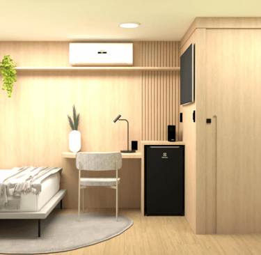 O modelo oferece praticidade e agilidade na instalação, proporcionando um ambiente moderno. Além disso, a sala se destaca pelos diferenciais de design alia funcionalidade, estética e inovação.